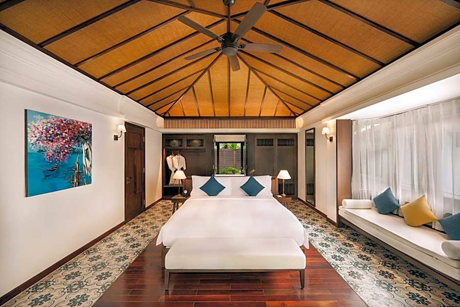 This villa features a private balcony that opens up to views of the sea and access to a private pool. The separate seating area is fitted with a flat-screen TV, desk and a safe. The stone-lined private bathroom includes a hairdryer. Down pillows and bed with Irish linen are available. The room type offers lounge access, complimentary one-time mini-bar, complimentary one-time afternoon high tea, optional breakfast with a-la-carte menu at Colonial restaurant.
